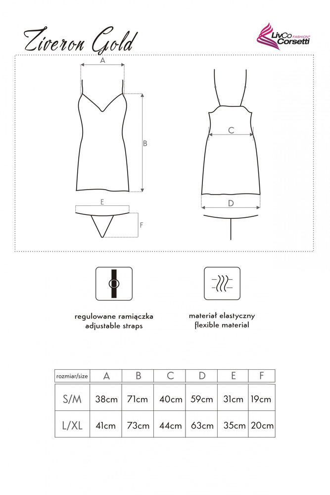 Ziveron Gold LC 90581 Komplet, koszulka i stringi LivCo Corsetti Fashion - gold