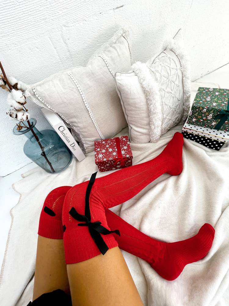 835 Wstążka Zakolanówki damskie Milena - czerwony