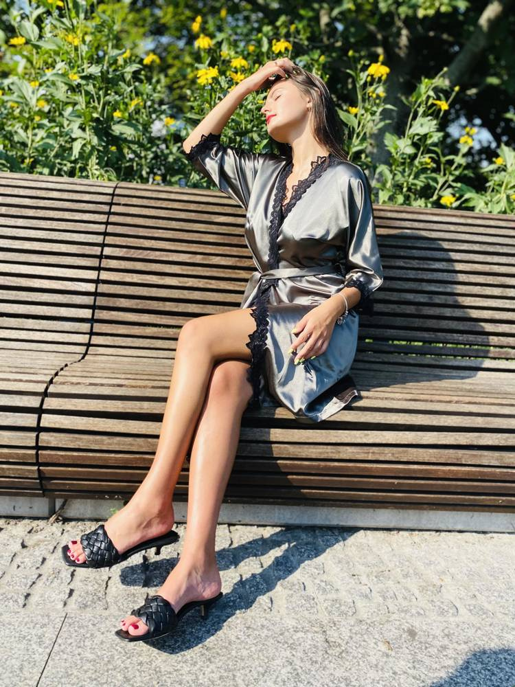 Acest model are toate calitățile fustei de corp perfecte - este sexy, fabricat din material de bună calitate și croiala sa va accentua perfect orice siluetă. Dacă vă plac halatele senzuale care vă înfășoară ușor corpul, iar atingerea satinului rece pe pielea încălzită este ceva care vă face să vă simțiți luxos - trebuie să alegeți halatul nostru. Partea din față și mânecile largi sunt împodobite cu dantelă de înaltă calitate pentru a crea un efect unic. Vă garantăm că vă veți simți foarte feminină și senzuală în ea. O curea din satin este adăugată la halat pentru a vă permite să îl ajustați corespunzător și să vă egalizați proporțiile.
