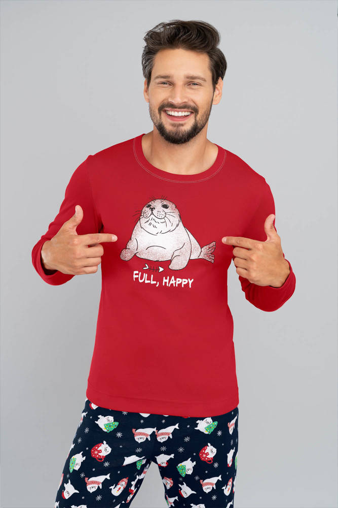 Elder Pijamale Bărbați cu mânecă lungă, pantaloni lungi Italian Fashion- roșu/print albastru marin