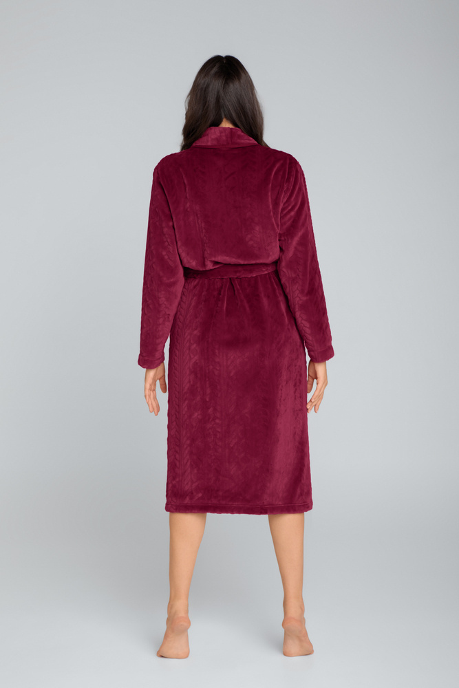 Halatul elegant pentru femei Bona este sugestia noastră pentru serile și diminețile răcoroase. Minunat de moale și extrem de cald, acesta vă va oferi confort și relaxare excepțională. Croială clasică finisată cu guler șal și buzunare practice. Cravata din talie accentuează frumos silueta. Model realizat din țesătură tricotată bi fleece într-un model foarte interesant și original de carouri 3D.
