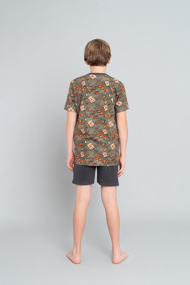 Western Boys' pijama cu mânecă scurtă, pantaloni Italian Fashion - olive/graphite