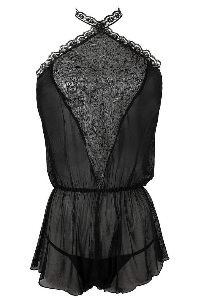 -Seksowne wiązanie na szyi opadające lekko na plecy