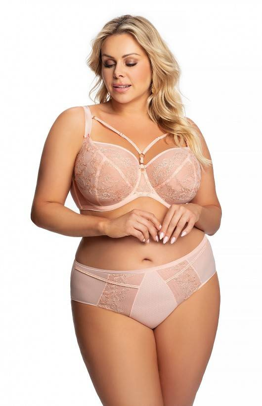 Biustonosz miękki Stella. Górne części miseczek wykonane zostały z podwójnej, haftowanej miseczki. Łączenie fiszbin ozdobione zostało delikatnymi, regulowanymi paseczkami z możliwością ich odpięcia. Biustonosz posiada wyższy karczek, dzięki czemu jeszcze stabilniej podtrzymuje biust.