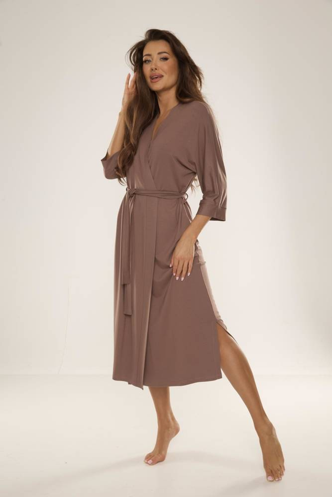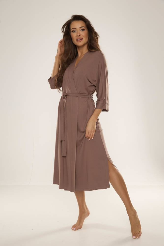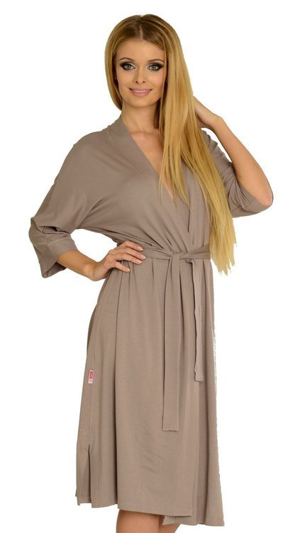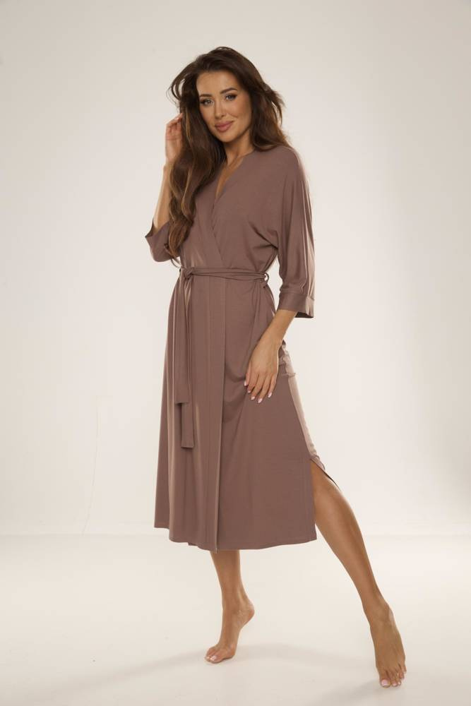 • Halat elegant pentru femei 942 Visa de De Lafense din viscoză de înaltă calitate. Tăietura lungă, mâneca 3/4 și talia creează un aspect feminin și clasic.