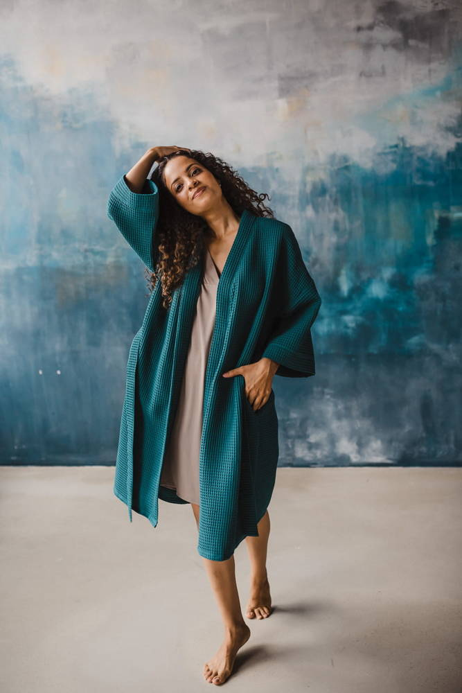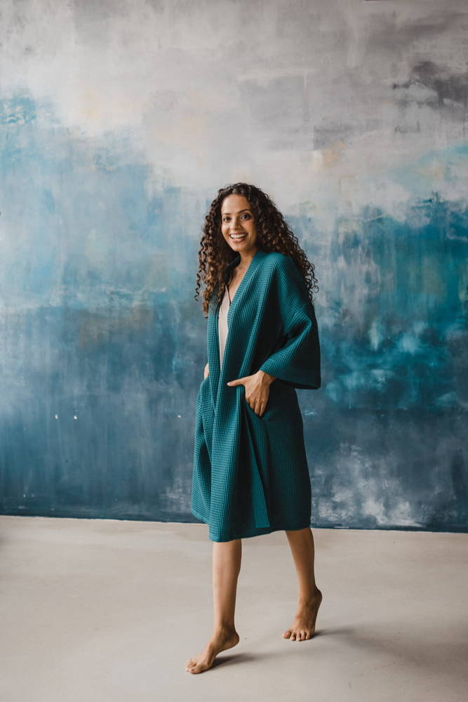 Szlafrok bawełniany wafel Milk&Love ciemna morska zieleń