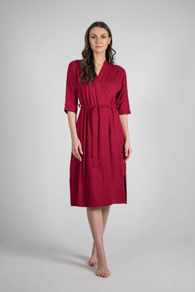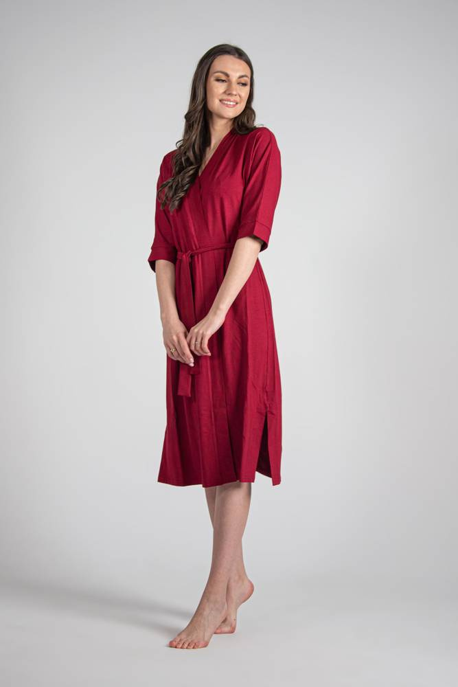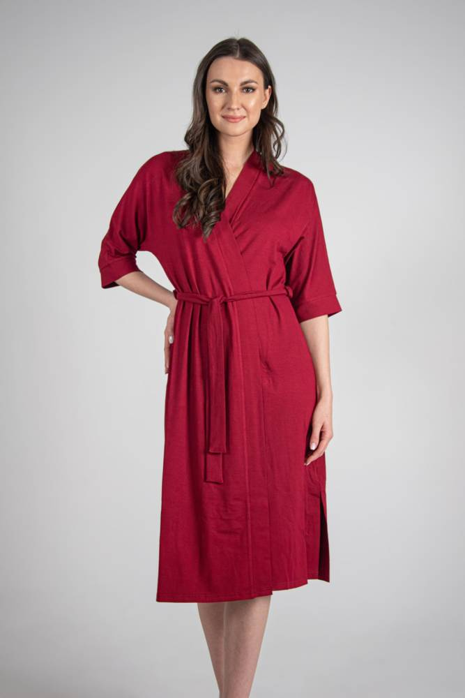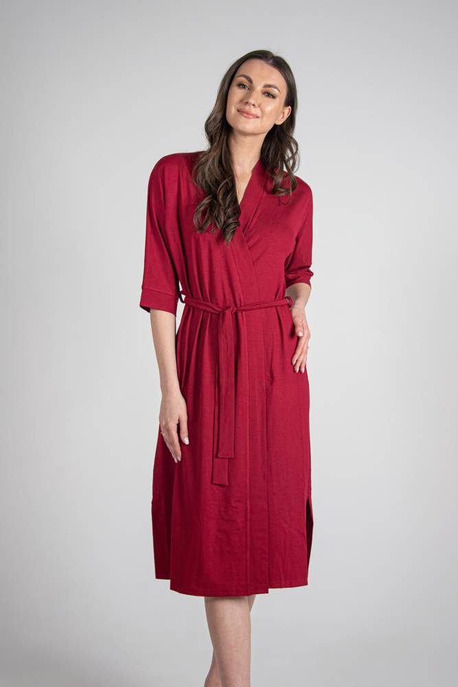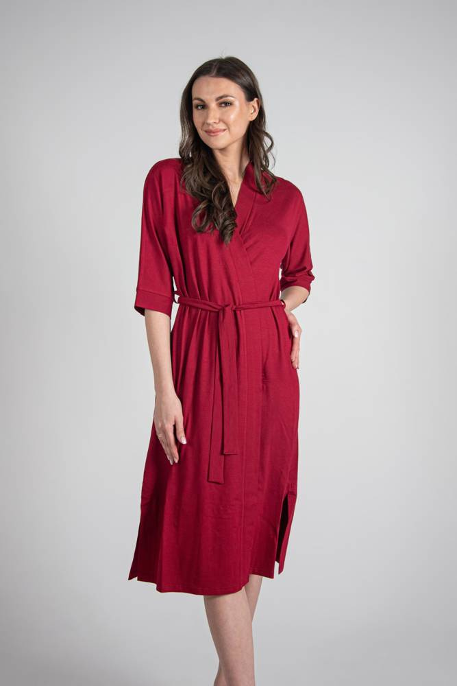 • Halat elegant pentru femei 942 Visa de De Lafense din viscoză de înaltă calitate. Tăietura lungă, mâneca 3/4 și talia creează un aspect feminin și clasic.