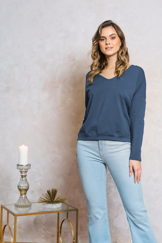 Bluză confortabilă pentru femei din material de trening îmbogățit cu elastan. Perfect pentru orice ocazie - acasă, în oraș, la serviciu.