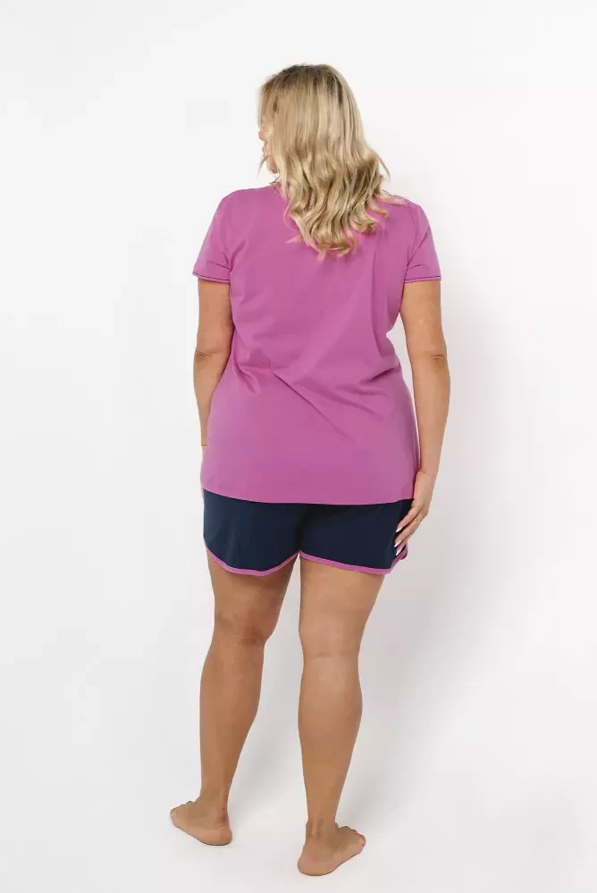 Ontega Ladies pijama cu mânecă scurtă, pantaloni scurți Italian Fashion- amarant/ albastru închis
