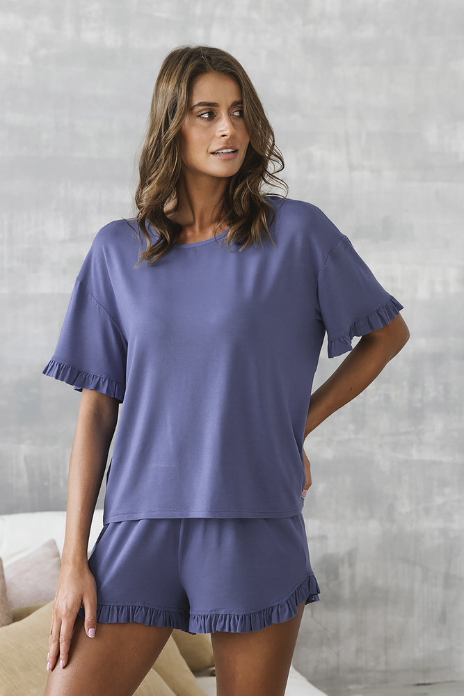 Stil Pijama cu mânecă scurtă pentru femei, pantaloni scurți Italian Fashion - albastru
