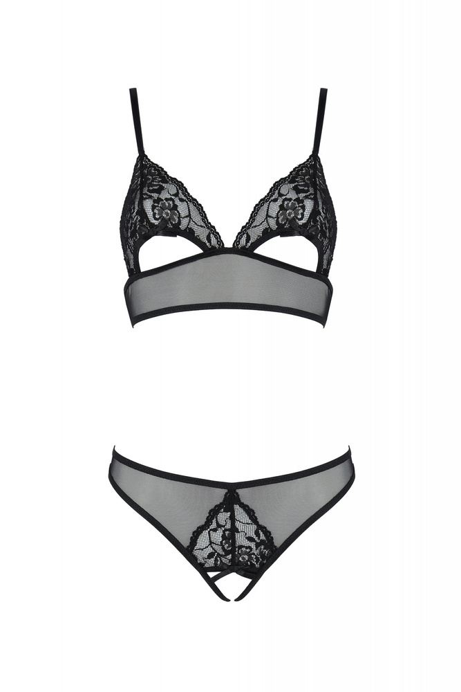 Christa set to bielizna złożona z idealnie komponujących się elementów. Czarny, wysokiej jakości materiał, delikatna, kobieca koronka i nietypowy krój- to wszystko składa się na wyjątkowość kompletu. Całość idealnie komponuje się z nieco perwersyjnymi wycięciami w części biustowej.