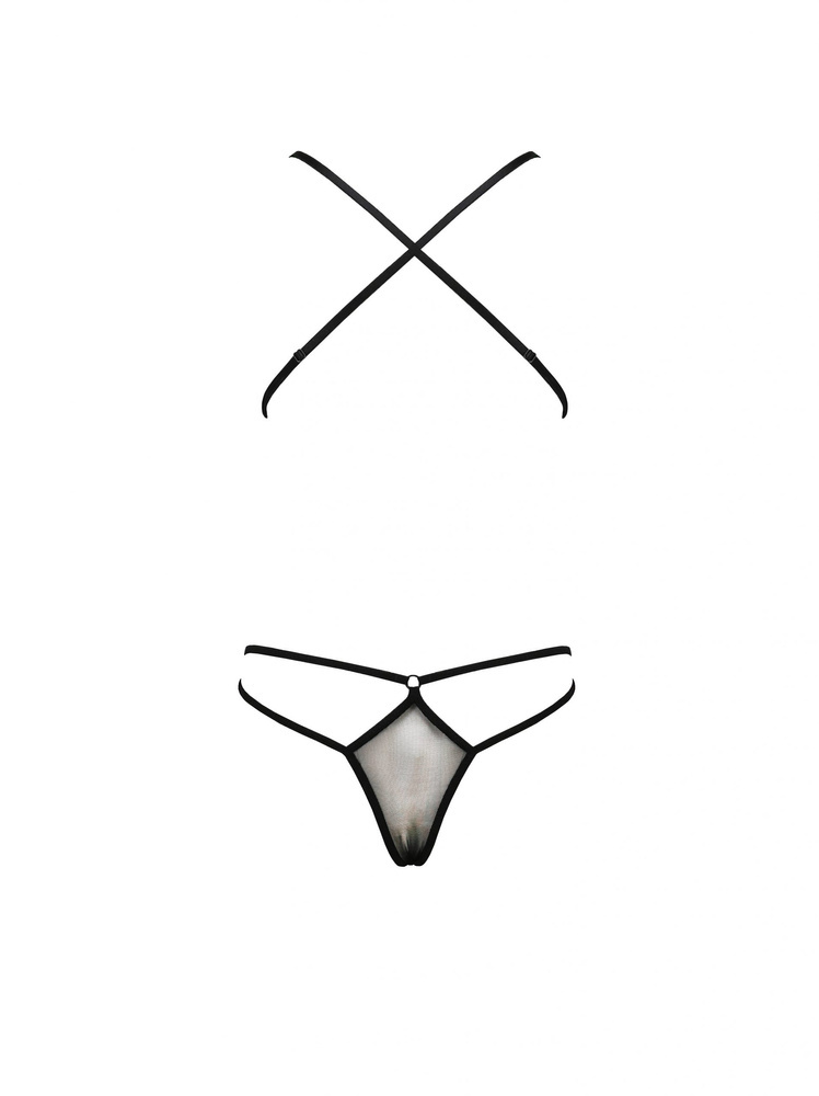 Zmysłowo wykrojony fason, urocza koronka oraz wyjątkowe zdobienia. Chcesz więcej? Proszę bardzo! Co powiesz na seksowne wiązanie na dekolcie oraz uwodzicielskie paski okalające biodra? Połączenie wszystkich tych elementów zapewnia fenomenalny wygląd podkreślając przy tym pośladki i eksponując biust tak, że każda kobieta wygląda jedynie w swoim rodzaju.