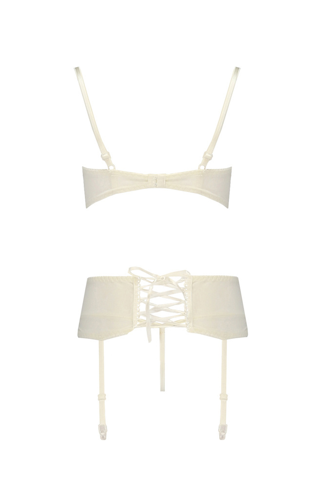 Trzyczęściowy komplet marki CASMIR wykonany z elastycznej satyny oraz delikatnego tiulu.