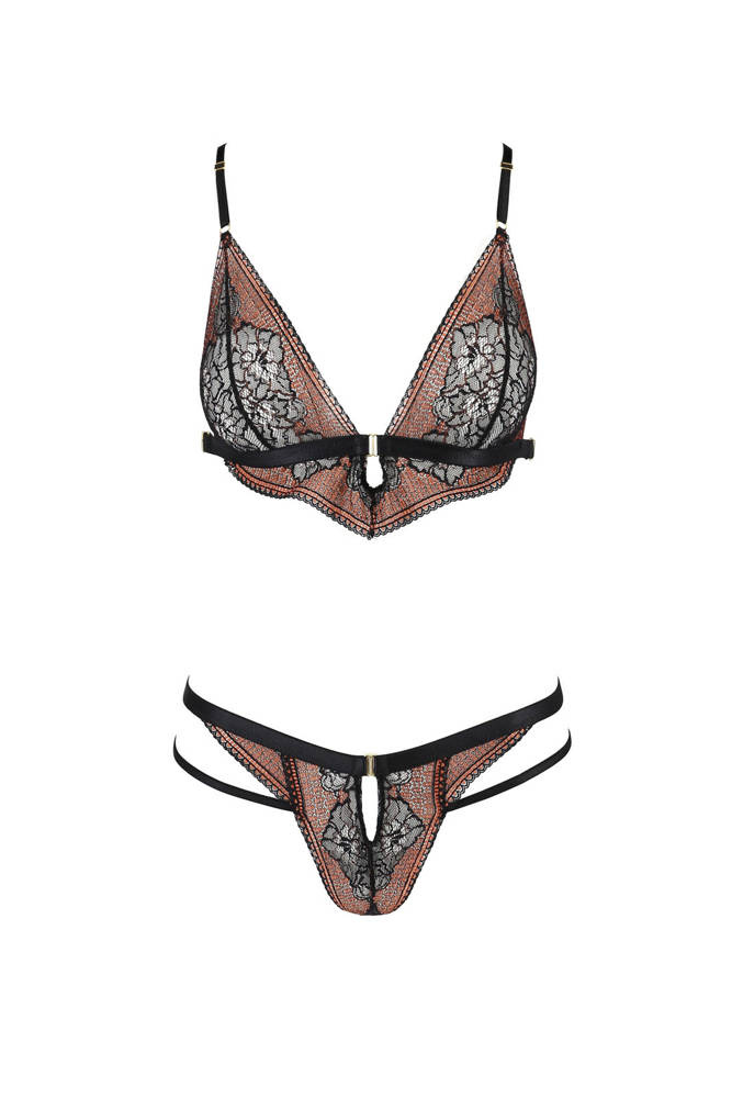 Przepiękna bielizna ze zmysłowym akcentem? Nikt nie przejdzie obojętnie obok kompletu Mirella. Dzięki zmysłowemu, oryginalnemu krojowi i niezwykle seksownej koronce, komplet podbije serce każdej kobiety!