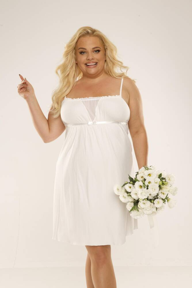 Cămașă de noapte extrem de confortabilă. Bretele înguste, reglabile, ușor încrețit pe bust. Panglică de satin sub bust. Lungime înainte de genunchi. A fost confecționată din vâscoză de înaltă calitate care, combinată cu croiala confortabilă, oferă confort maxim la purtare. Elasticul de pe bust permite alăptarea.