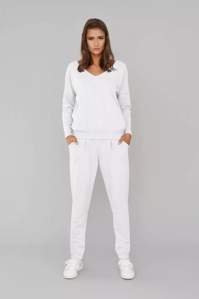 Karina Ladies set cu mânecă lungă, pantaloni Italian Fashion - alb