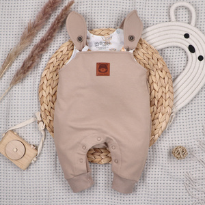 Salopă pentru bebeluși Beary Cool Eevi - ecru, bumbac, broderie cu ursuleți de pluș, cu piciorușe