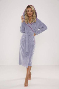 7229 Halat de baie dama Doctor Nap - bumbac, gluga, finisaje elegante - gri inchis