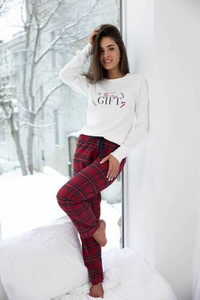Pijama Tess pentru femei cu mâneci lungi și pantaloni lungi Italian Fashion - verde/print