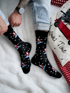 1290-032 Șosete de Crăciun pentru bărbați Milena – Moș Crăciun pe snowboard, melanj deschis
