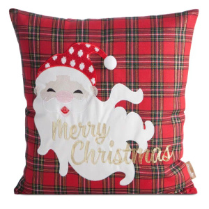 Cap. 165 Față de pernă de Crăciun Eurofirany – model roșu în carouri cu Moș Crăciun și inscripție