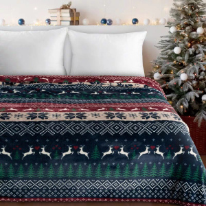 Pătură de Crăciun Eurofirany, bleumarin și roșu cu model scandinav – o pătură moale din microfibră, 240 g/m²