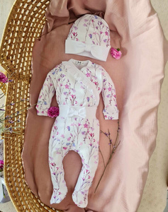 216009 Pijama pentru bebeluși Lala Nicol – 100% bumbac, imprimeu cu căprioare și trandafiri