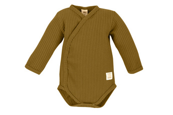 03249GB Body pentru bebeluși „Natural Waffel” cu mâneci lungi Makoma maro auriu
