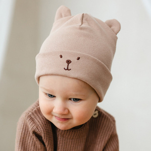 216054 Căciulă Lala Nicol – bumbac cu nervuri și elastan, urechi și etichetă Be happy