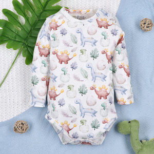 Body din bumbac organic cu dinozauri exploratori ABN-5566 Nini Mentă – Bumbac organic, mânecă lungă