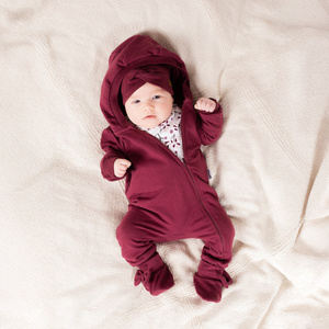 Salopetă Fluffy Tails Eevi pentru bebeluși – piele de oaie, ecru, cu urechi și fermoar