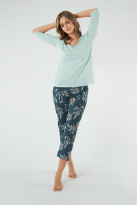 Julietta Pijama de damă mâneci 3/4, pantaloni 7/8 Modă italiană - fistic/print