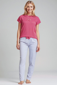 Pijamale dama Shearly Sorbetto gri - 100% bumbac, aplicare 3D, pantaloni cu mansete