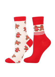 Șosete de damă Moraj CSLS300-046/2 roșii/vanilie - Crăciun, bumbac, set de 2 perechi