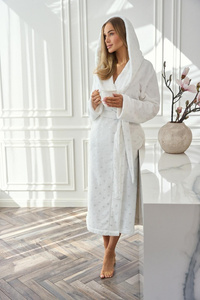 Halat de baie pentru femei 2551 Amira L&L alb – lung cu glugă | Eleganță și confort