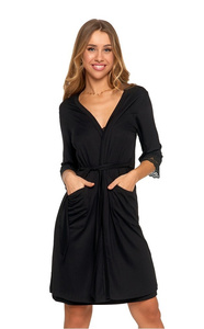 7229 Halat de baie dama Doctor Nap - bumbac, gluga, finisaje elegante - gri inchis