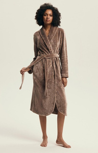 Halat de baie Dextra Henderson Coffee pentru femei - moale, cu legături, până la genunchi