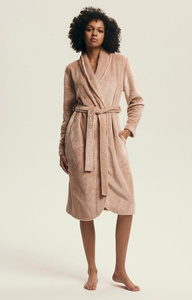 43595 Halat de baie Dextra Henderson culoarea piersicii pentru femei – moale, cu legături, sub genunchi
