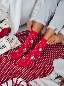 1283-040 Șosete cu fursecuri Milena – șosete de Crăciun pentru femei cu motiv de fursecuri, roșii