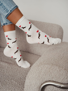 Șosete damă Milena 0200-201 Jamniki Valentine’s Day – din bumbac, cu teckeli și inimioare, mărimea 37–41