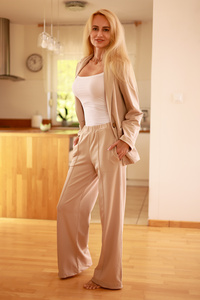 Lisa - set dama: top + pantaloni, 95% bumbac 5% elastan | Marca poloneză Mirale - bej