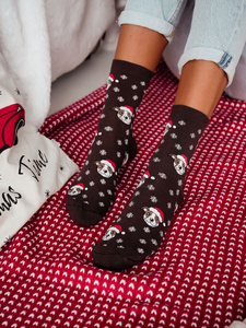 1283-039 Șosete Milena – Șosete de Crăciun pentru femei cu buldogi și fulgi de zăpadă, maro
