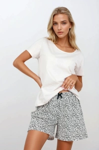 Pijamale de damă Mona ecru cu mânecă scurtă în dungi