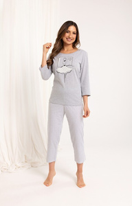 716 Pijamale dama Regina, gri - bumbac, maneci 3/4, pantaloni 7/8 cu modele