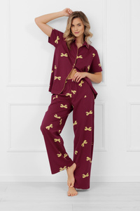 Pijama 733 Regina – din bumbac, cu mânecă scurtă, decolteu semicircular, print decorativ