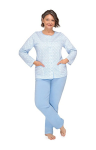 Pijamale 703 Regina bumbac albastru - dama, maneci 3/4, pantaloni 7/8, imprimeu cu plante