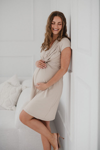 Rochie Loop de maternitate si alaptare, maneca scurta, Milk&Love, bej deschis