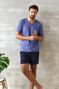 Nikodem Pijama cu mânecă scurtă pentru bărbați, pantaloni scurți Italian Fashion - albastru