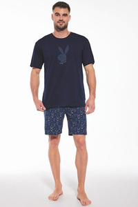 Pijamale bărbați NMP-395 - bumbac gri și bleumarin, mâneci scurte, ușoare și confortabile pentru vară