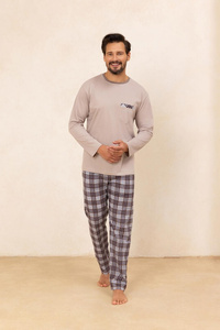 Regina 488 – pijama bărbătească bej din bumbac cu mâneci lungi, croială clasică